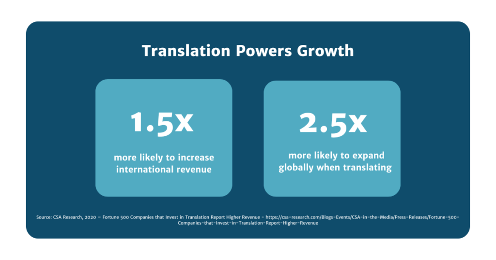 - are 2.5 times more likely to expand globally when translating into 5 or more languages (CSA Research, 2020)